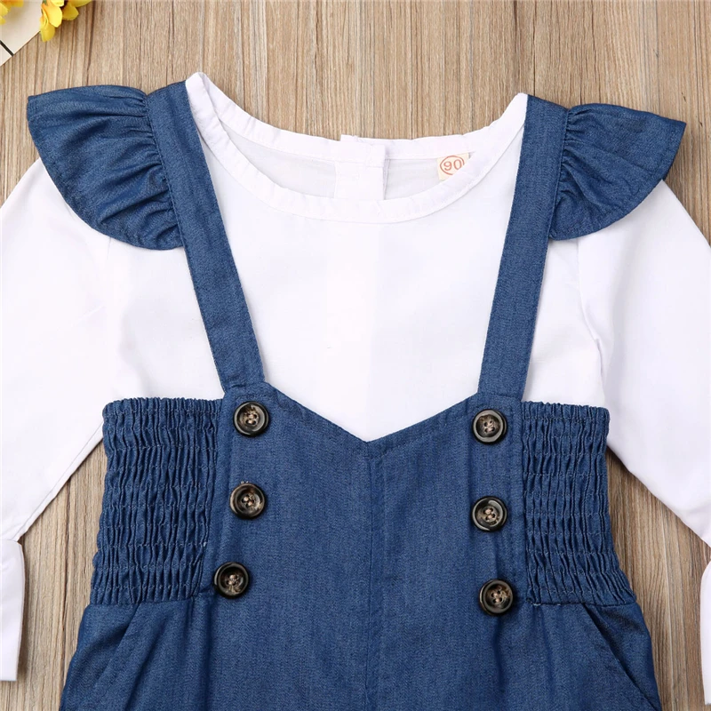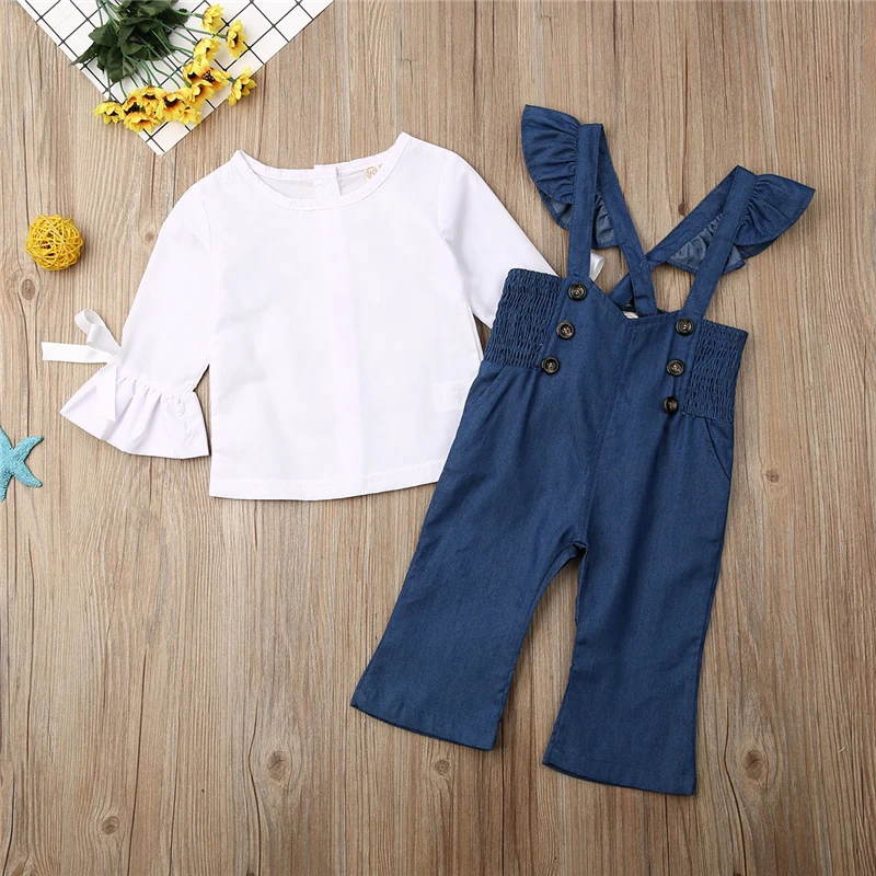 Limited Price for 2019 Infant Kid Baby Girl Flare Sleeve Top Strap Denim Trousers Jeans Pants Outfits Clothes 1-6 Yea