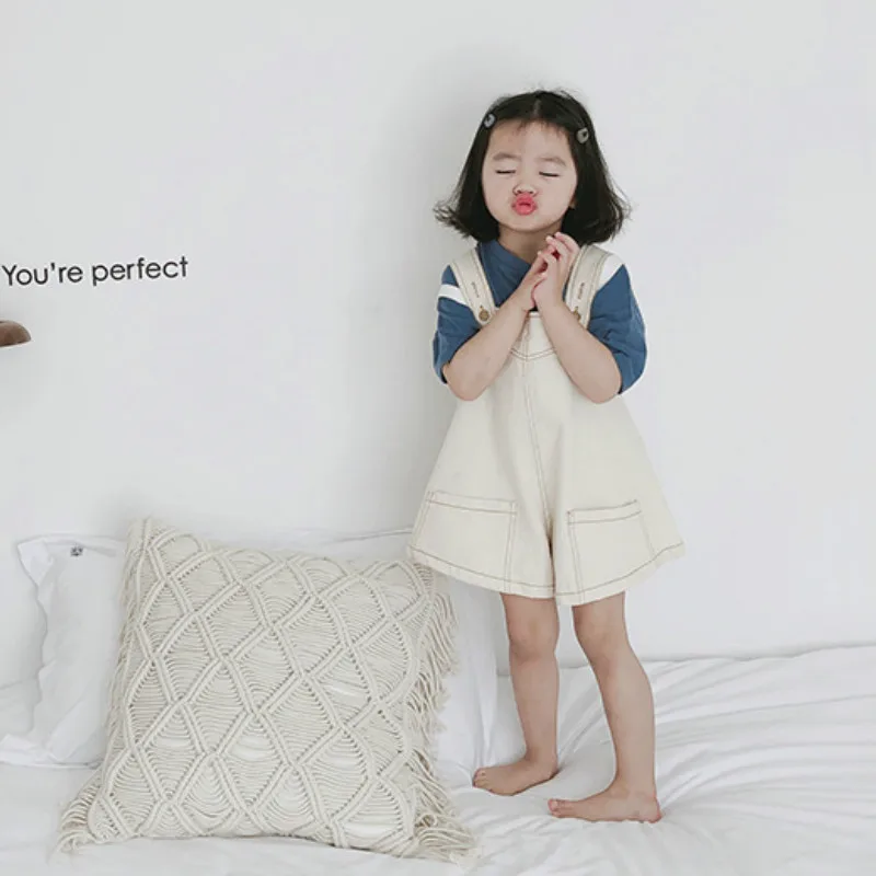 0 Response to " 2019 New Girls Baby Casual jeans overalls Children Summer rompers playsuits Fashion Loose Denim ove"