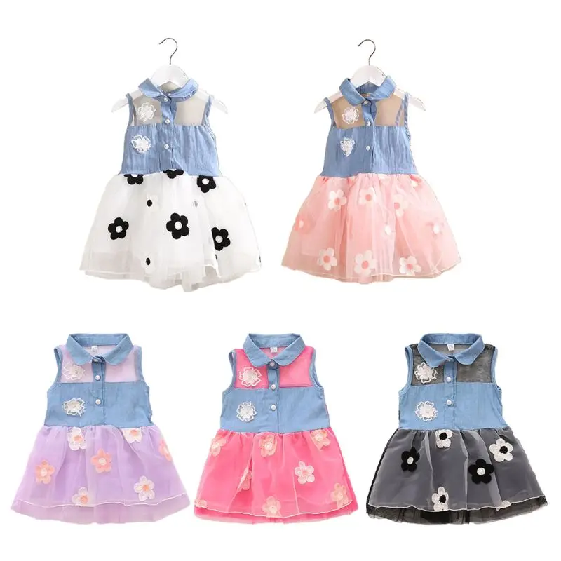 Special Price of Cute Princess Baby Girls Dress Kids Jean Denim Sleeveless Tops Tulle Tutu Sundress Dress for Girls